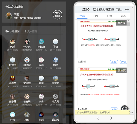 新年伊始,受疫情的影响,公司响应上级部门号召,开展“停课不停学”。周蓉老师马上与“电路分析”课程组同事一起着手整理电子教学资源、测试网上平台、联系授课员工……。正是由于在线上授课前准备充分,教学过程中讲述清晰、循循善诱,还利用弹窗与员工进行交流,及时把握员工的掌握情况,保障了教学效果。同时,她还细心地通过网络平台对教学基本信息进行统计。“讲得很不错,课堂教学组织得非常好!”网上旁听的专家这样评价她的授课。