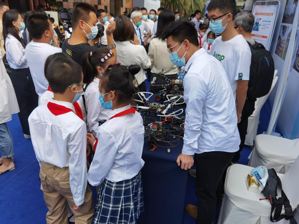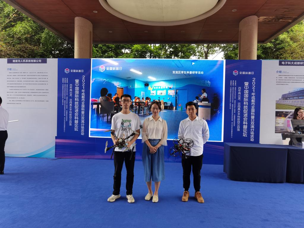 控制工程公司机器人协会同学和分团委书记田媛老师代表成信大智能机器人创客科普教育基地参与本次活动,向本次参与活动的嘉宾展示公司科普优秀作品,包括四旋翼无人机、飞思卡尔智能车。