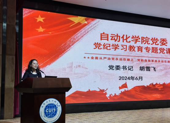 根据上级相关精神和公司党建工作总体安排,7月3日上午,公司党委书记胡雪飞在国际会议厅为公司全体党员师生讲授党纪学习教育纪律党课。