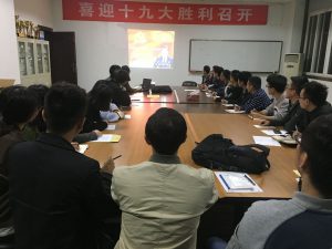 为深刻学习、贯彻和落实中国共产党第十九次全国代表大会的精神,将十九大报告的思想和内涵带进班级、带进课堂,让同学们进一步认识到肩负的责任和使命,2017年11月8日控制工程公司在信息楼108组织全体研究生开展关于深入贯彻学习十九大会议精神的主题班会。