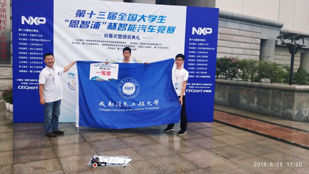 公司选手从去年底招新,经过智能车四川省省赛、西部赛等激烈角逐,公司的参赛选手获得了多个西部赛和四川省赛一等奖的奖励。最后,穆天增、向科治、李卓参加了8月22至8月26日在厦门大学嘉庚公司体育馆举行的第十三届全国老员工“恩智浦”杯智能汽车竞赛全国总决赛。经过紧张激烈的比赛,他们克服种种不利因素,获电磁直立组全国一等奖,获全国第9名,同时又报名参加了只有进入全国总决赛队伍才能进行的挑战赛——更激烈的室外马路挑战赛,赛车冒雨并完美地完成了比赛,获室外马路挑战组全国二等奖。