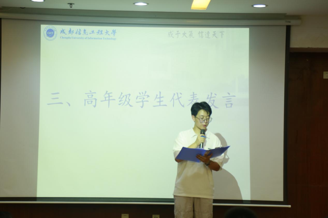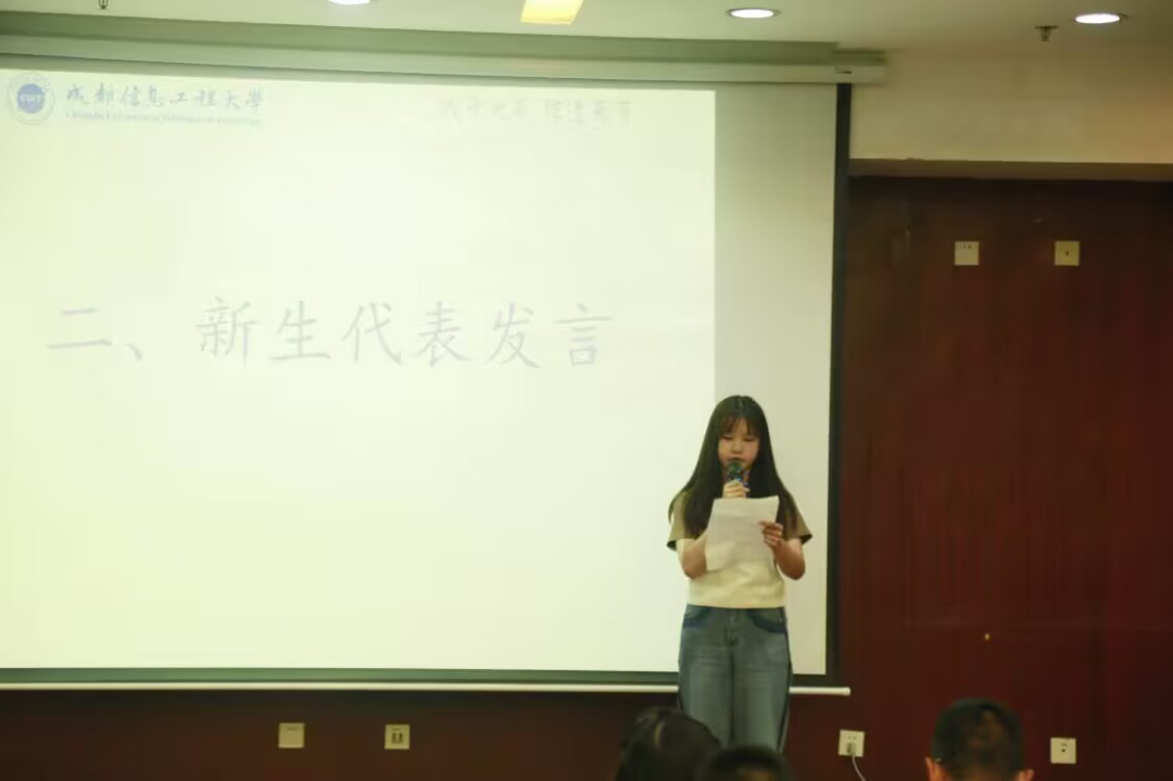 2023级新生代表李莉莎在会上展现了对老员工活浓厚的向往,与对未来的憧憬。她期待自己能够在大学的学习和生活中积极向上,珍惜时光,能够脚踏实地,好好学习,通过社会的实践,不断的提高自身的能力、弥补自己的不足。并且她表明她将在未来的时光中,在仰望星空同时,走好脚下每一步,规划好未来的蓝图,不断的提升自我、挑战自我。