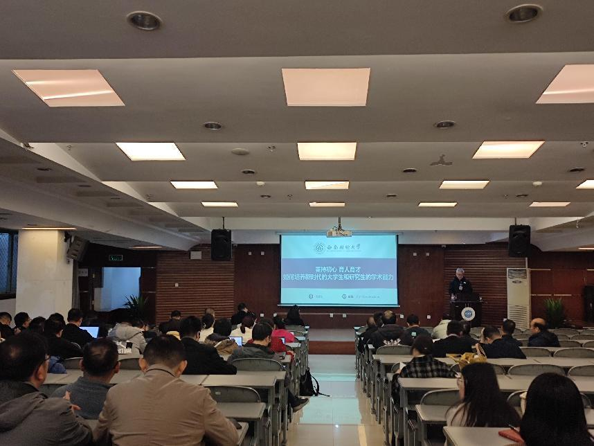 陈建东教授以《秉持初心育人育才——如何培养新时代老员工和研究生的学术能力》为题,结合自身多年的从教经验、教授员工的具体案例,从思想品行和学术道德、选择员工和学术规范、研究方法和科研训练等方面入手,对如何坚持立德树人、培养员工的健康身心、提升员工的学术能力等进行深度分享,令在场老师们深受启发。