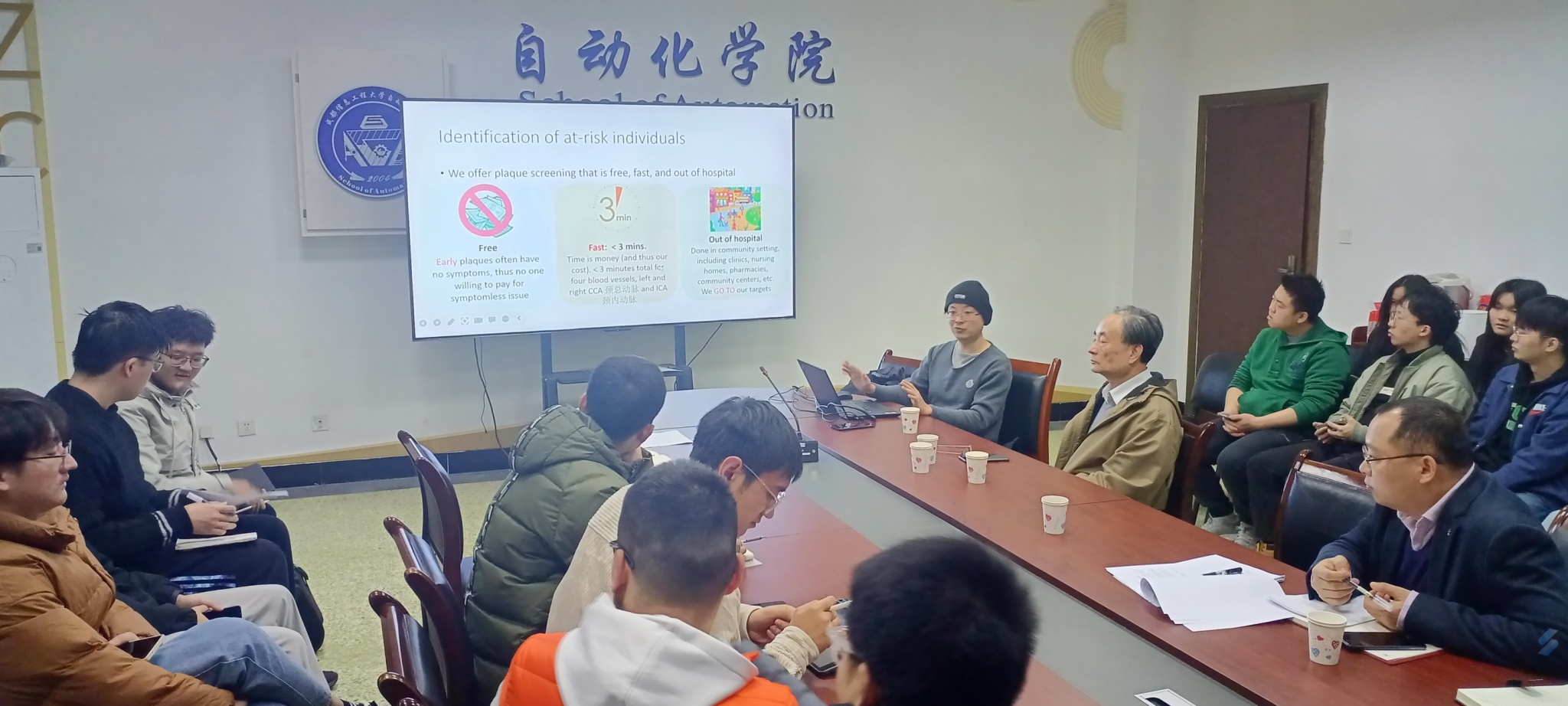 Prof. Dong C. Liu本次讲座围绕主题“Diagnosis of NAFLD and related CVD with Medical Ultrasound“介绍了一个跨学科的研究领域,即使用医学超声诊断非酒精性脂肪性肝病(NAFLD)和相关心血管疾病(CVD)。Prof. Dong C. Liu首先从病理因素方面分析了NAFLD和CVD之间关系,研究了NAFLD和CVD患者在临床的声学特性。进而为师生展示了用于NASH的CEUS以及肝纤维化诊断的SWE/ARFI特征提取和算法,这些研究都是近一年来的最新成果。