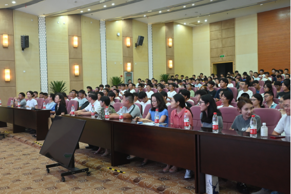 最后党委书记胡雪飞上台发言。胡书记对于新生们的到来表示热烈欢迎,同时也提到在当今,我们面临着前所未有的发展机遇和挑战,因此,我们必须保持清醒的头脑,敏锐地洞察形势变化,了解大学与高中的变化,并且适应变化;并且提出让同学们做好规划,寻找个人未来方向和个人目标,找到前进的动力。最后,她还提到,广大青年员工要把理想信念作为立身之本,把为民服务作为价值追求,要涵养廉洁自律的道德修为,系好人生“第一粒扣子”;进入大学以后,我们要学会独立,要学会生活,丰富自我,适应自己的生活环境,多与父母和老师沟通交流,时刻保持一颗感恩的心。