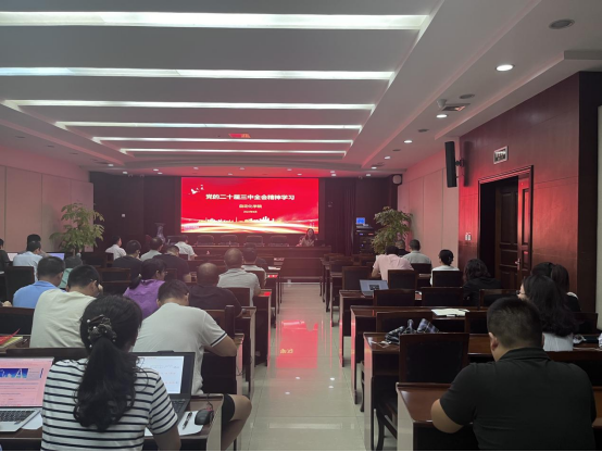 9月29日,公司召开全院会议,集中学习党的二十届三中全会精神及全国教育大会精神。会议由公司党委书记胡雪飞主持并领学。