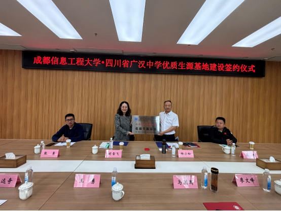 杨小松和胡雪飞分别代表两校签约,胡雪飞代表公司向广汉中学授“优质生源基地”牌。双方表示,将以本次“优质生源基地”的建立为契机,充分利用各自优质教育资源,不断深化合作内涵,共同做好优秀员工的衔接培养,努力建立合作共赢的长效机制,为培养更多优秀人才贡献力量。
