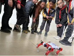 在道孚县甲斯孔乡,科普团队展示了我国自主研发的智能机器人和四足机器狗。孩子们在老师的指导下,通过语音指令操控机器狗完成行走、避障等动作,并参与编程小游戏,亲手为机器人设计简单指令。同时用简单易懂的方式向员工讲解传感器、电机控制等核心技术,帮助青少年理解智能设备的运作原理。