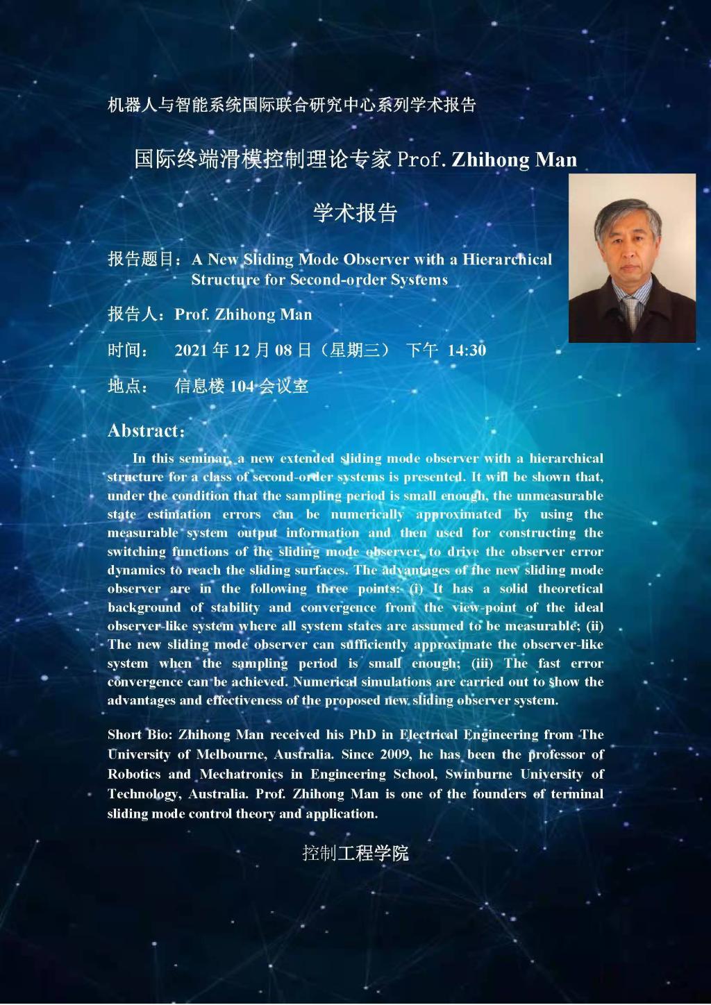 机器人与智能系统国际联合研究中心系列学术报告国际终端滑模控制理论专家Prof.Zhihong Man