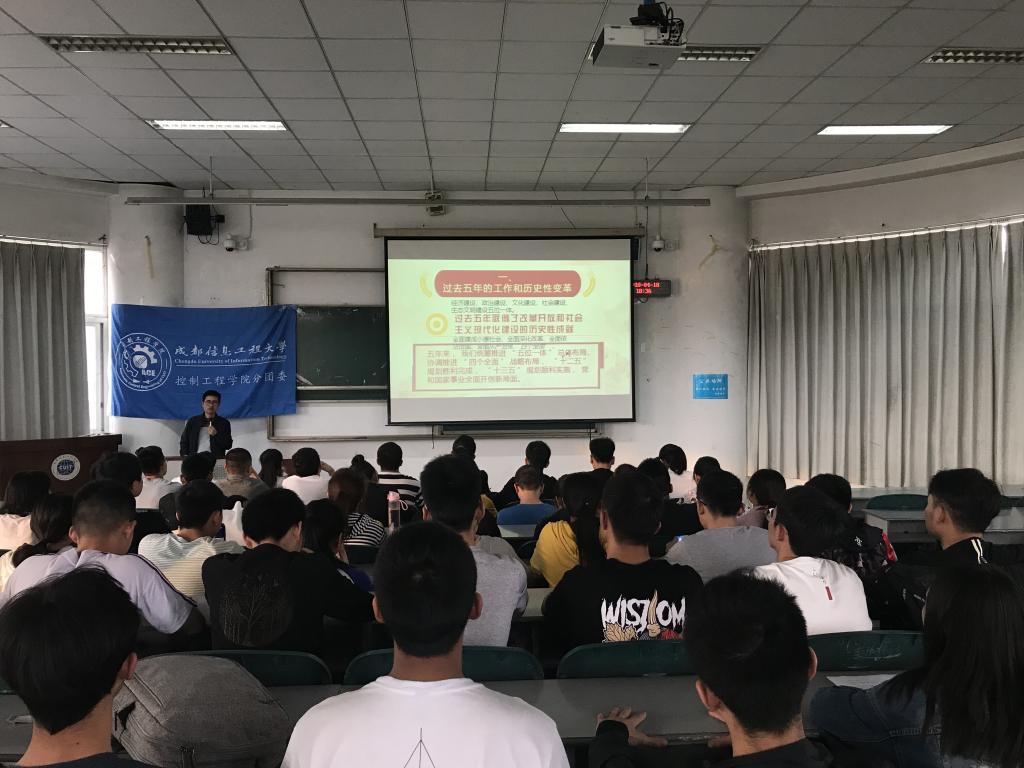 为贯彻执行伟德国际唯一官网入口员工工作部《关于认真开展党的十九大精神主题教育活动》通知,4月18日晚,控制工程公司组织员工干部开展学习党的十九大精神的主题班会,公司党总支书记邓丽琴、副书记张勇、员工工作办公室主任赵玮、分团委书记田晓旭、辅导员吴丽、贾丽、吴丹丹老师参加了本次主题活动。2017级全体员工干部参会并学习。