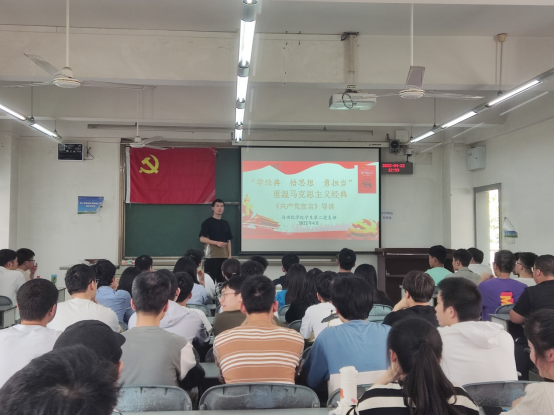 4月23日是第27个世界读书日,为响应习近平总书记“希望广大党员、干部带头读书学习,修身养志,增长才干;希望孩子们养成阅读习惯,快乐阅读,健康成长;希望全社会都参与到阅读中来,形成爱读书、读好书、善读书的浓厚氛围”的殷切期盼,4月22日中午,bevictor伟德官网员工第二党支部在1502教室开展了“学经典、悟思想、勇担当”主题学习活动。员工第二党支部全体党员和入党积极分子参加了本次主题学习活动,黄鑫同学带领大家学习《共产党宣言》节选,他分别从《共产党宣言》的形成背景和形成过程两个方面阐述了《共产党宣言》发表的必然性和先进性。
