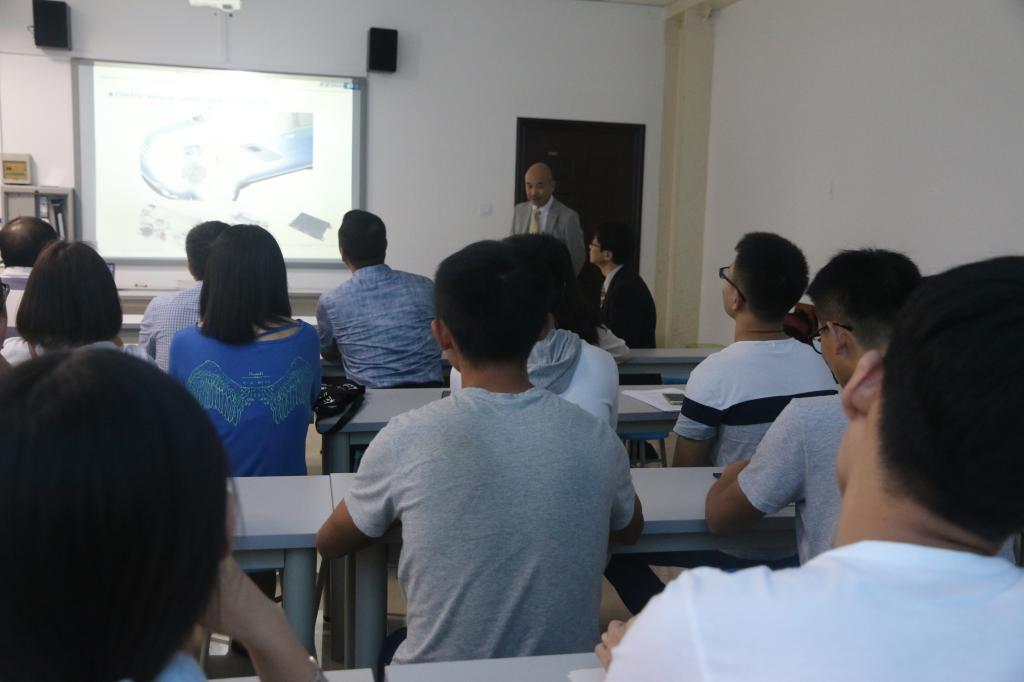 报告结束后,钵吕俊隆和袁方两位部长与师生进行了交流,沟通了一些对燃油汽车和电动车的看法。双方表示,今后将进一步加强教学和学术方面的交流和合作。