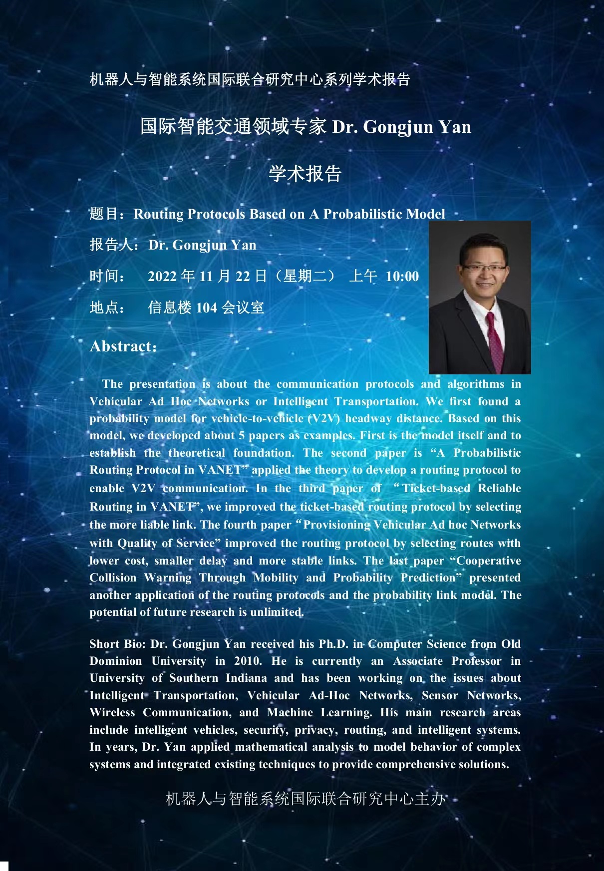 机器人与智能系统国际联合研究中心系列学术报告国际智能交通领域专家Dr. Gongjun Yan学术报告