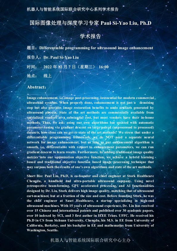 机器人与智能系统国际联合研究中心系列学术报告国际图像处理与深度学习专家Paul Si-Yao Liu, Ph.D学术报告