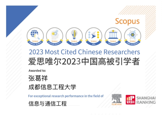 2024年3月27日,爱思唯尔(Elsevier)重磅发布2023“中国高被引学者”(Highly Cited Chinese Researchers)榜单。bevictor伟德官网张葛祥教授连续第四次入选。