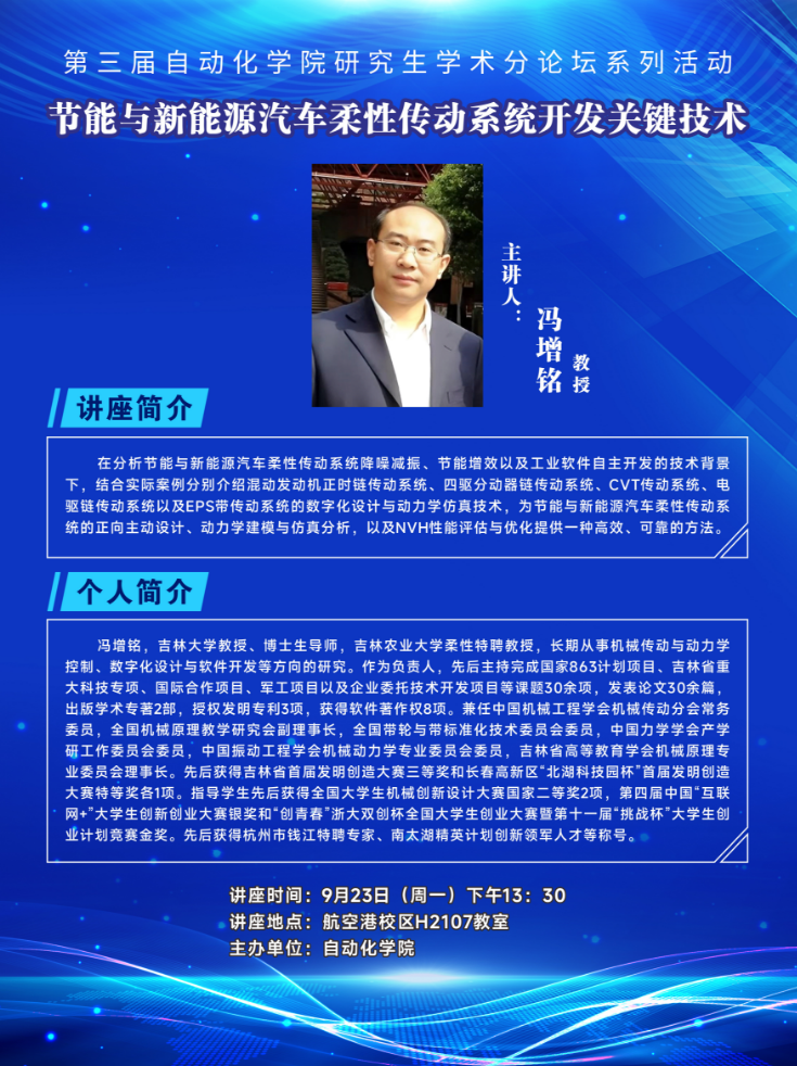 【学术讲座预告】节能与新能源汽车柔性传动系统开发关键技术