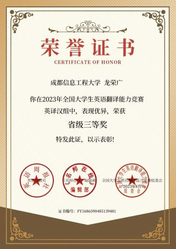 十年磨一剑,龙荣广同学在学习方面,大一大二连续两年综测专业第一,大三绩点专业第一,获得两次特等奖学金及一次国家奖学金。工作方面,担任部门负责人、公司团委副书记、社区兼职副书记,尽职尽责,收到表彰。实践方面,是疫情中的信息检录员,是挥洒青春汗水的大运会志愿者,是寻访红色踪迹的三下乡成员,是服务社会逐梦杨帆计划的参与者,目前累计志愿时长超百小时。此外,积极参与学科比赛,也有所收获。思想方面,积极向党组织靠拢,参与团课党课学习并顺利结业。课余中,运动放松,弹琴修身,积极参加各项活动,丰富自我。