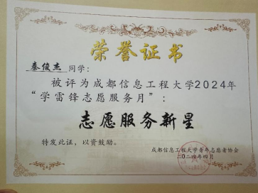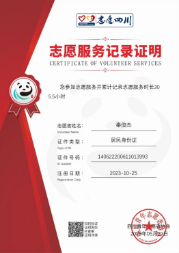 作为一名志愿者,他积极投入到各项志愿活动中,用自己的爱心、身体力行地服务社会,如参加了“2024年‘6.26’国际禁毒日宣传教育暨《川小戒课堂:毒品预防教育》新书发布会。在会议期间上台参加赠书以及授旗仪式,得到了主办方的大力表扬,并荣登四川公安公众号、人民网等主流媒体的报道。